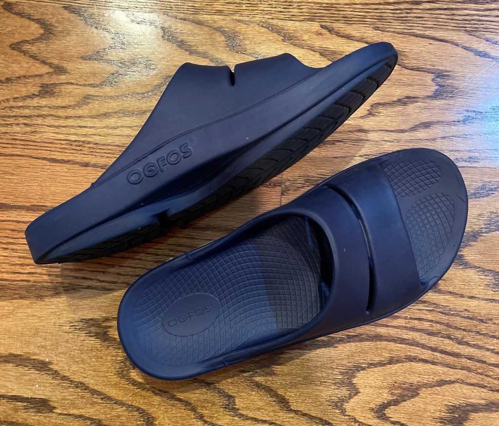 And finally, I’ll need some open air shoes to help my feet recover after daily walks. I found these Oofos sandals at the local running store. They are lightweight, soft, durable, and have a lot of arch support. I love these shoes! They are like walking on a bouncy floor.
