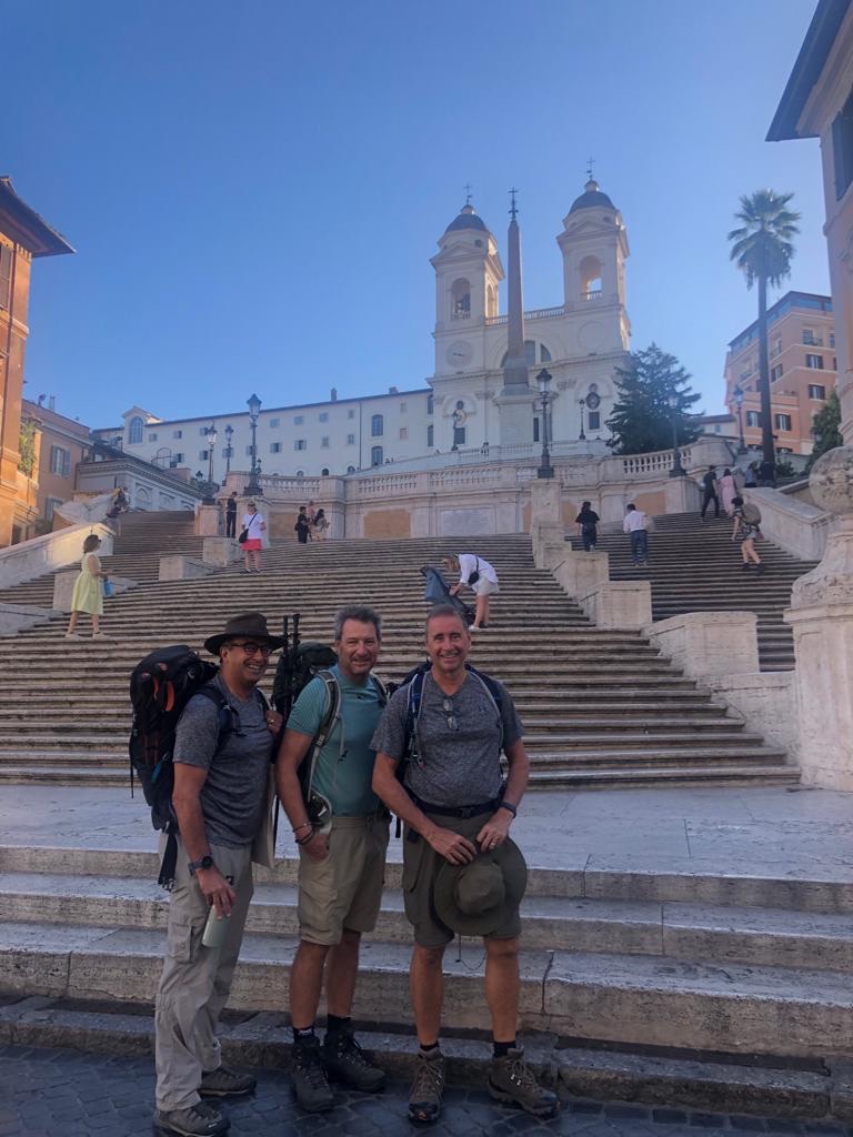 Today began with a lot of excitement. We met in the hotel lobby at 8:30 and set out looking for a cab to take us to the edge of the Roman suburbs. But first, we needed a group picture at the base of the Spanish Steps. To be clear, this was Juan Pablo’s idea, even though my son-in-law calls me “Social Media Pete”.