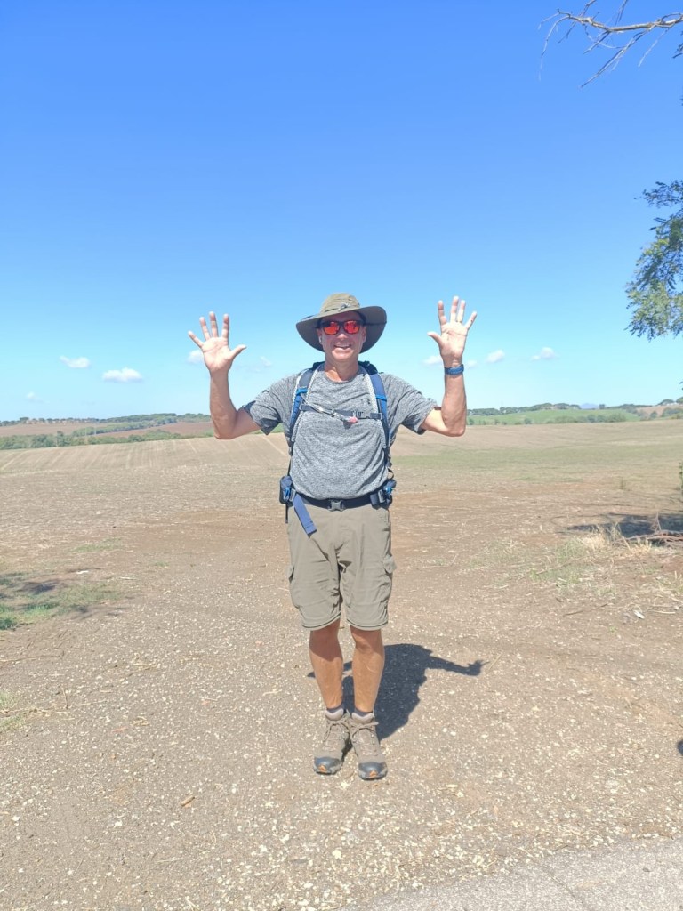 At the 10 km mark, JP took this picture to mark my first 10 km. Only 230 km to go!
