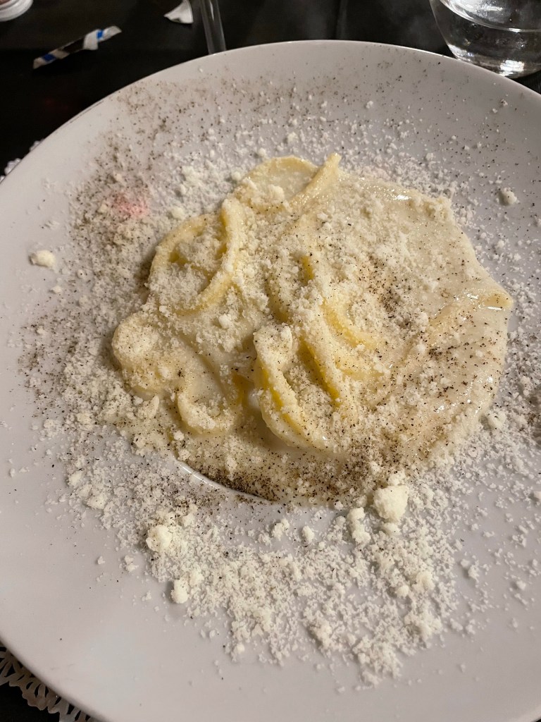 Dinner tonight was at Il Tinello restaurant near our hotel. We started with bruschetta, then I had cacio e pepe pasta, followed by a half portion of steak and salad. A hearty meal for a hearty day on the trail.