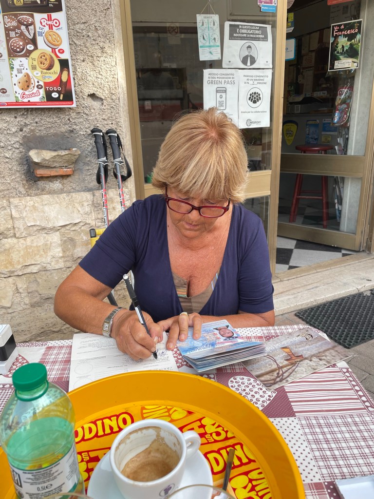 We started the day on a high note. Patricia, one of the angels from yesterday, told us that she had the registration booklets for the Via di San Francesco hike, and she would be glad to register us as official “pilgrims”. At each stop along the trail, we get stamps that prove we were there. Thanks again, Patricia.