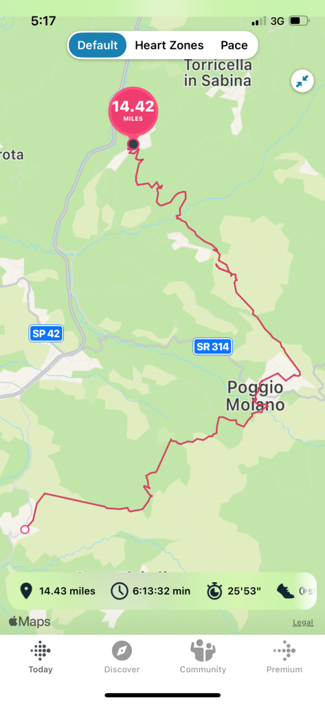 Today was a day filled with physical and emotional ups and downs. Our route today started in Ponticelli and would take us 20 km (14.4 miles) north to the hilltop town of Poggio San Lorenzo. As you can see from the map (below) we had to go east before we could go north.