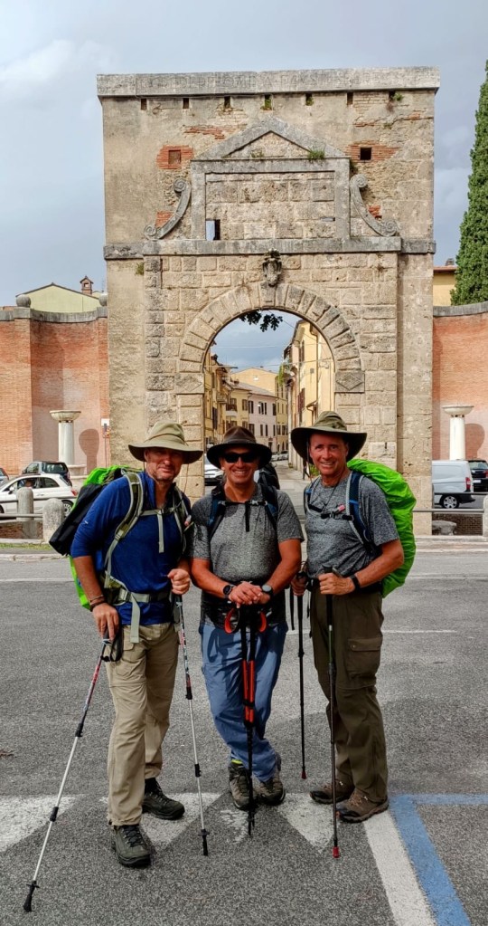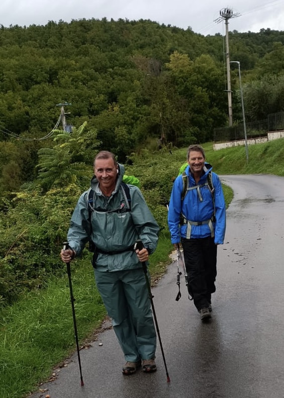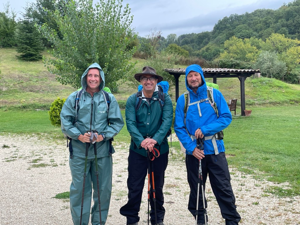 Today, we hiked from Poggio San Lorenzo to the city of Rieti. This was another 20 km hike, made more difficult by the rain that greeted us as we embarked. But this did not dampen or spirits ( or our resolve). Although it did make the first 4 km very hot, because the rain gear does not breathe.