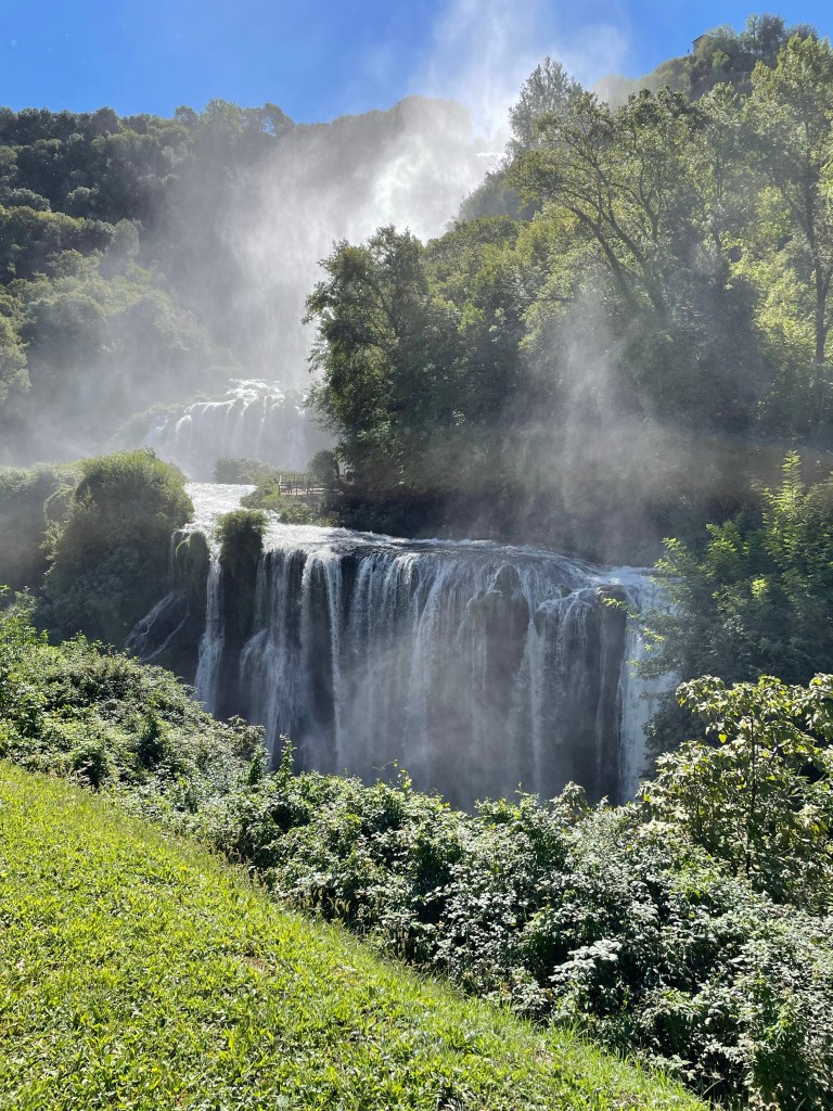 The most amazing part of this stage was a dramatic waterfall in Marmore. None of us had ever heard of this waterfall, but we paid the 10 euros and experienced the highest waterfall in Europe. There were two observation areas. One at the top and one at the bottom.