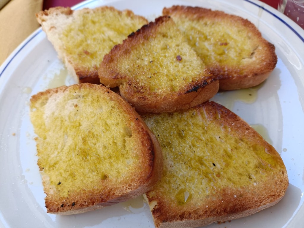 The menu was quite limited, but they agreed to make a vegan pasta with mushrooms for Ms. Caroline, the same pasta with some crispy bacon for Stephen and Juan Pablo, and then, a sausage lasagna for me. To start of, JP ordered an Olive Oil Bruschetta for the table. What is that? Well it was nothing more than olive oil soaked toast. Sounds horrible, right? Not at all. It was delicious!