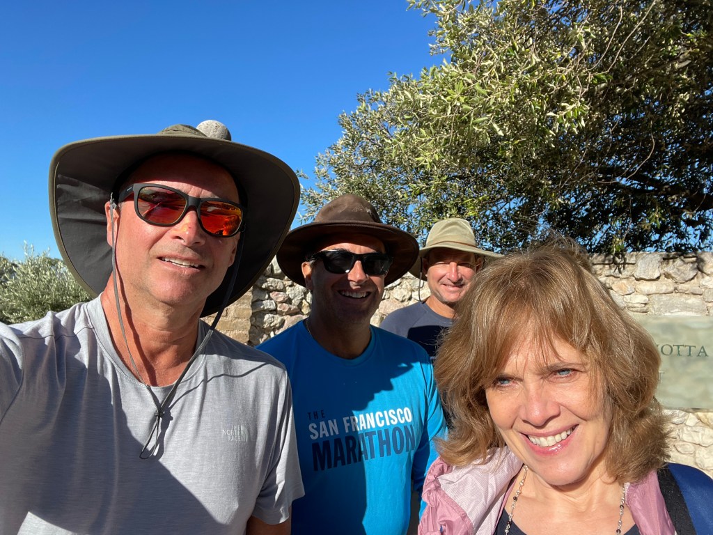 We were joined on the first part of our trip by our special guest star from yesterday, Ms. Caroline. She is a widow from South Africa and traveling to Assisi alone, on a self-guided tour. She seems to be able to tolerate our silly, old guy antics and so we invited her to join us for the first phase of todayβs journey.