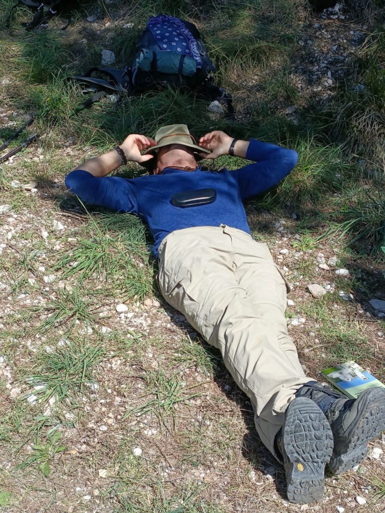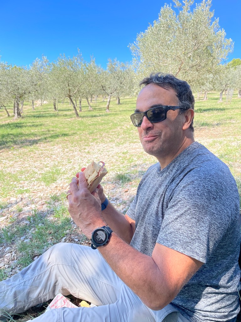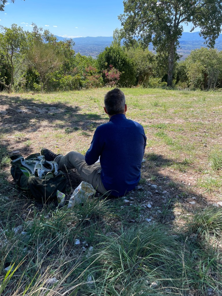 As we neared exhaustion during our misguided climb, Juan Pablo declared that it was lunchtime. We unpacked our paninis, olives, chips, and drinks. Put down our backpacks. And sat in a shaded spot overlooking the fields below. After lunch, Stephen tried to take a quick nap, but JP “the mountain goat” pushed us onward and upward.