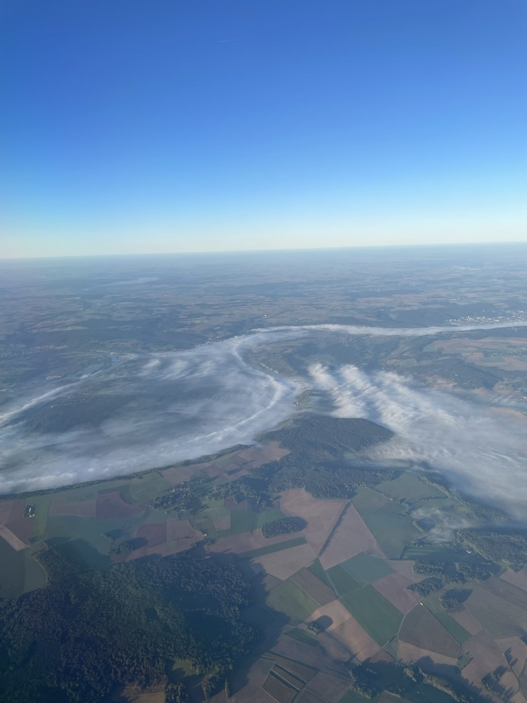 Flying overnight is always a mixed bag. Sometimes I sleep, and sometimes I don’t. This time I got about 3 hours of sleep, but that means I’ll probably crash around dinner time. My emotional fog was illustrated brilliantly by the rivers of fog swirling around the french countryside as we were landing.