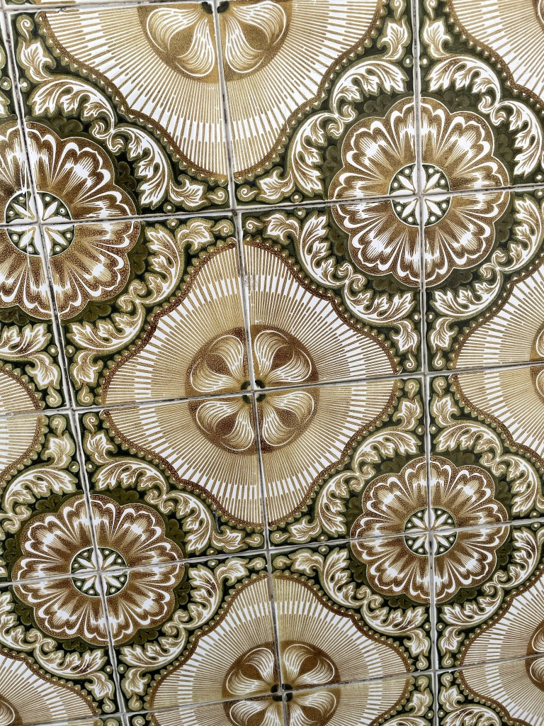 The tiles on the houses were mostly geometric patterns in blues, greens, oranges, and brown.