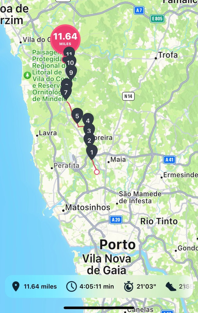 These tiles provided the only beautiful aesthetic during our 11.6 mile journey from the outskirts of Porto to the small village of Vilarinho. Most of the trip looked like a visit to a concrete factory. The building were industrial. The road was cobblestone. And the walls were gray stone. As a result, a little color went a long way.