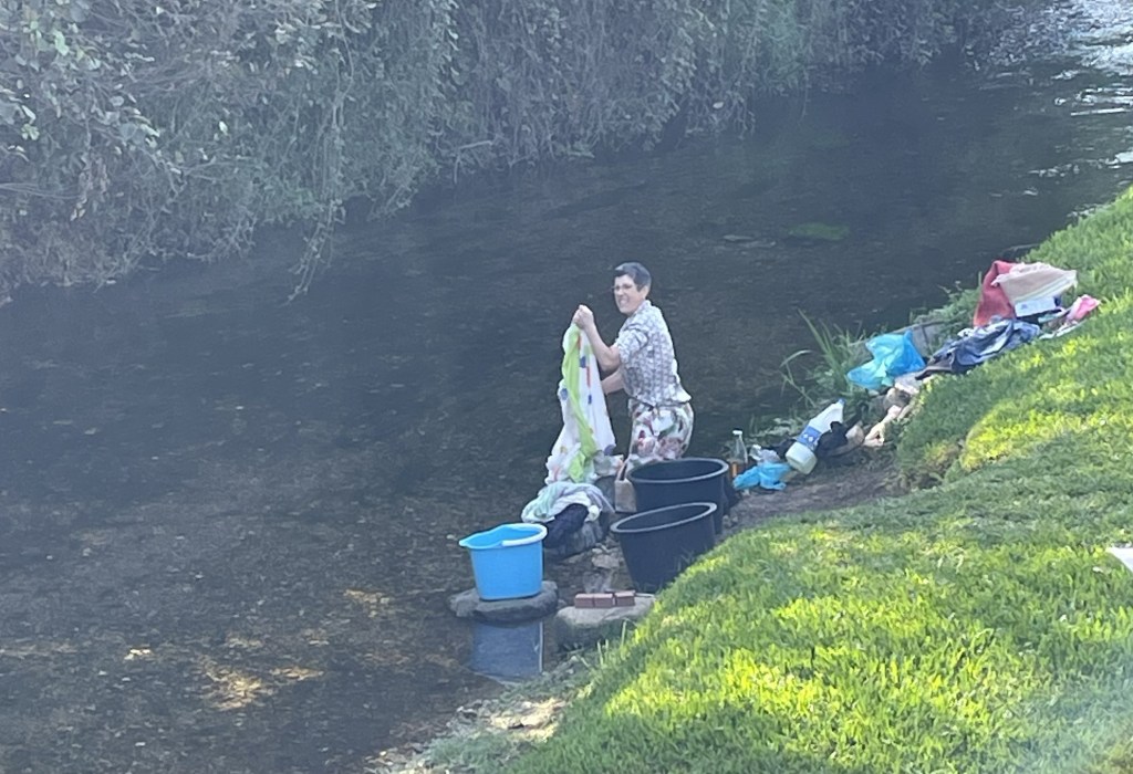 There were some interesting sights on the road this morning – a man and his donkey, and a lady doing her wash down by the stream. (Not something you see everyday in Kentucky.)