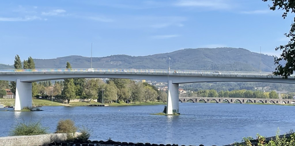 Right around noon, we arrived in Ponte de Lima, a beautiful little town along the Lima river. Ponte de Lima (the Lima Bridge) actually has 2 bridges – one old and one new.