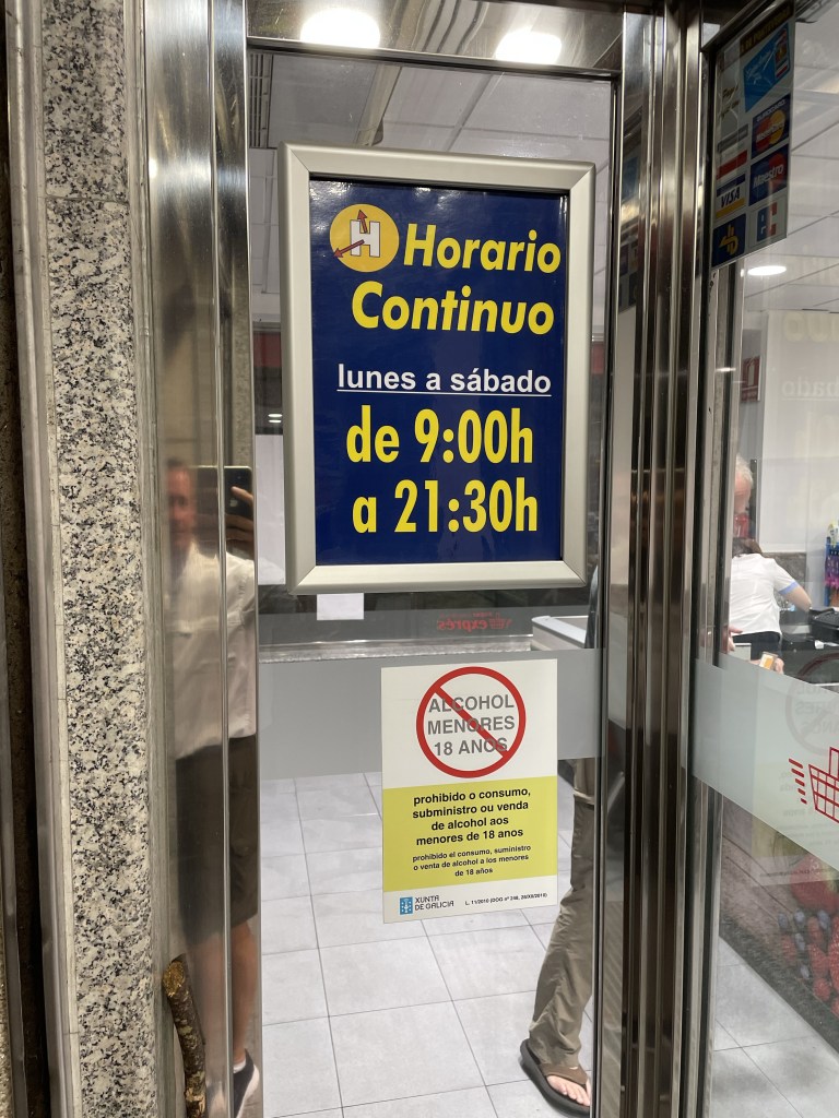 But the biggest surprise came after dinner tonight. We all spotted an ice cream freezer in the tapas restaurant and planned to indulge in a frozen, chocolate or vanilla treat after dinner. Unfortunately, after dinner, we discovered to our horror that the freezer was empty. Stephen quickly suggested that we find the nearest grocery store and see if they had any ice cream available. Good plan, but we realized that it was after 21:00 (9pm), so the probability was low that anything was open. As we strolled back to our hotel in defeat, Stephen spotted the grocery store with a sign that said it was open until 21:30.