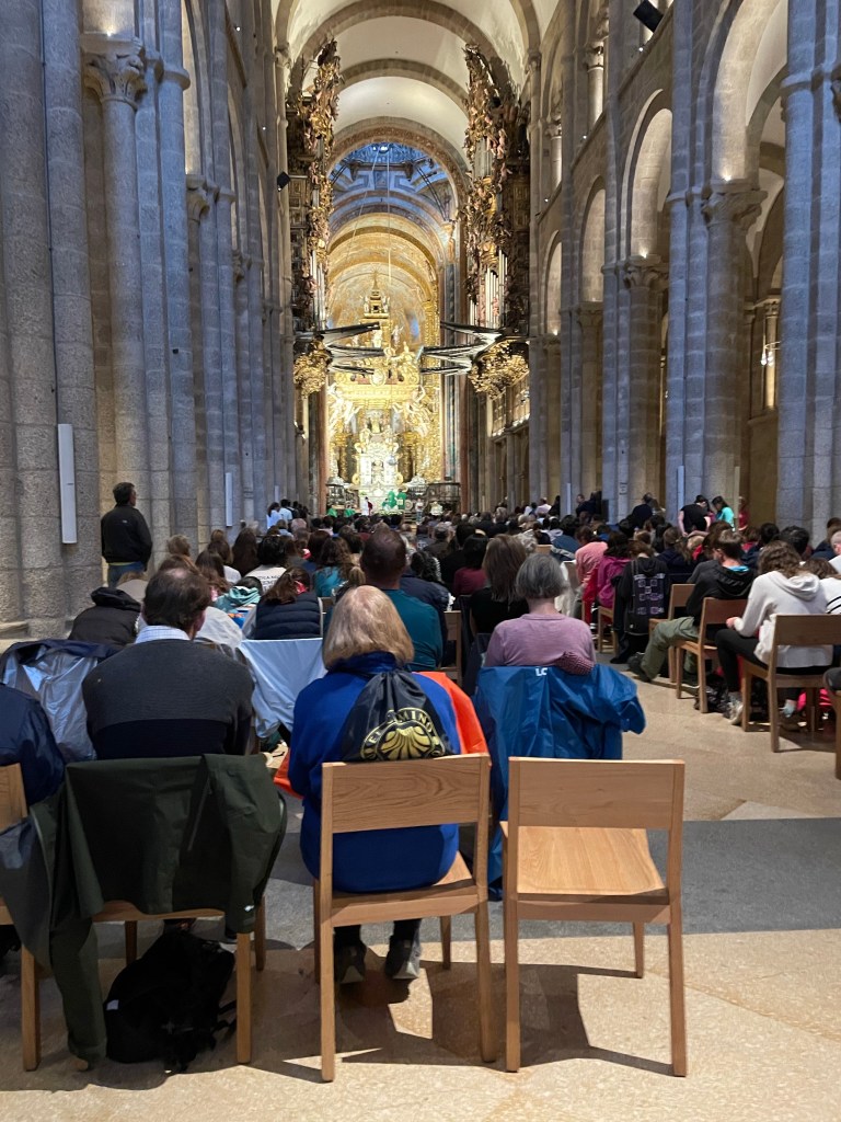 We decided to end this journey at the Cathedral where St. James ( Sant Iago) is burried. There was a pilgrim’s mass at 9:30 this morning, which allowed us to get a little extra sleep than previous mornings. We wondered how many pilgrims would actually show up, and were surprised by the multitudes. When we arrived at 9:20, every seat was taken. There must have been close to a thousand people in that church.