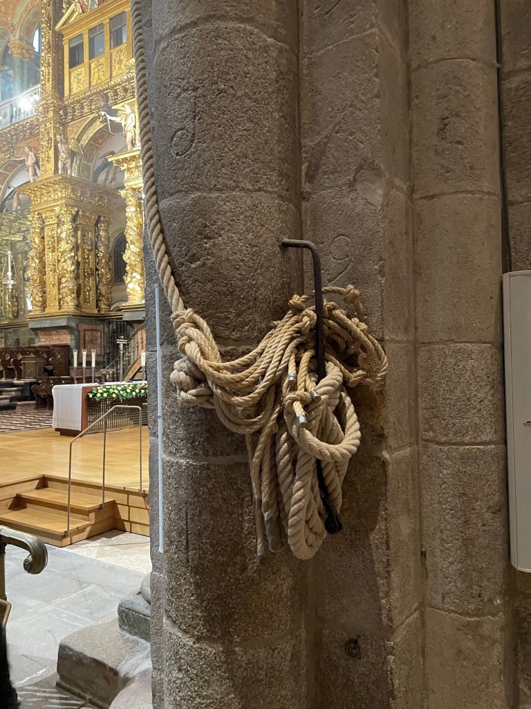 Interestingly, there were people of all ages (young and old), all economic classes, and from all corners of the earth. It was truly a testament to the appeal of the Camino and the Catholic Church. The mass was said in Spanish (so I only caught every fourth word), but I was struck by the remarkable consistency of this ritual. The prayers, the sequence if events, the music, the responses, were all the same as what I have experienced in the United States. The only thing that was different -and I mean REALLY different – was a special incense ceremony at the end of the mass.