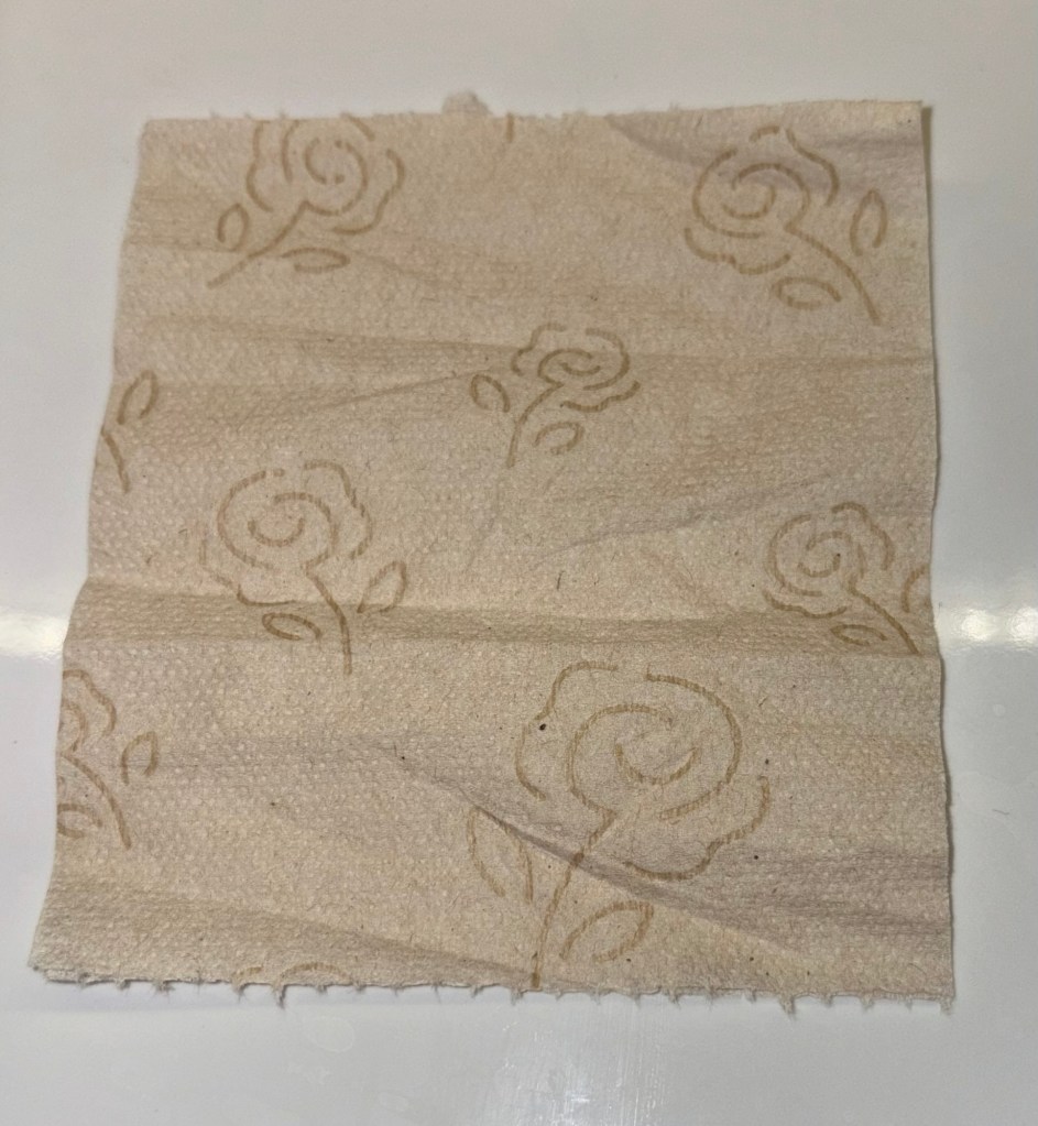 This paper is relatively thin, feels rough to the touch, but sports a comforting floral pattern, (designed to transport you to the great outdoors while you do your business). I contend that this toilet paper represents the italian fascination with fashion over function. The designer probably told his boss, “we can sell cheap toilet paper, if we put a pretty picture on it”. Needless to say, to the more discerning American butt, this paper leaves a lot to the imagination.