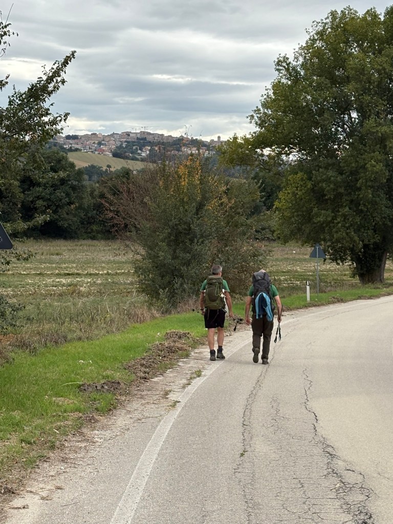 The most interesting adventure occurred in a little town called Camerano. There, we met a 75 year old man who told us that his young grandson told him that he wanted to go hiking with him. The man told him “se potresti durare” (if I might last) until the child was old enough. I felt that way today. I’m hoping to last until we get to the Ligurian Sea. It’s another 240 miles and 19 days of hiking. My legs are killing me. So, I hope I might last until we get to the other side.