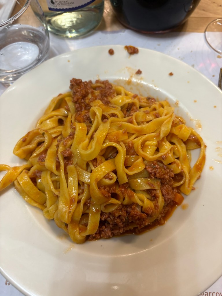 Our B&B in Osimo is in the top floor of a 6-story apartment building. Si, after climbing into town, we had to climb 6 stories to get to our rooms. The good news is that nothing brings you back to life like a plate of homemade pasta with beef ragu. I have to say that this plate made all the climbing seem like a distant memory.