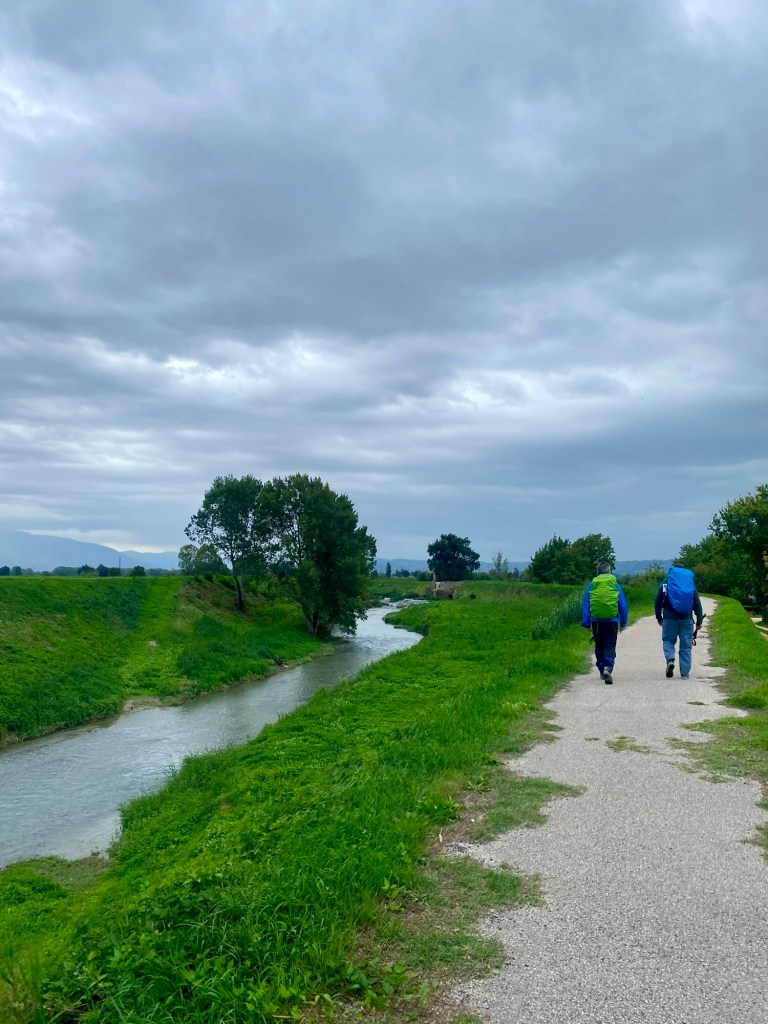 Today we decided to spend a few hours in Assisi before hitting the road. So after a little sightseeing in the sunshine, we took a cab halfway to our next destination and started walking from there. We hiked 10 miles from Cannara to Gualdo Cattaneo, Italy in the pouring rain. My Fitbit says I took 20,900 steps, climber 154 flights of stairs, and burned 1,900 calories.
