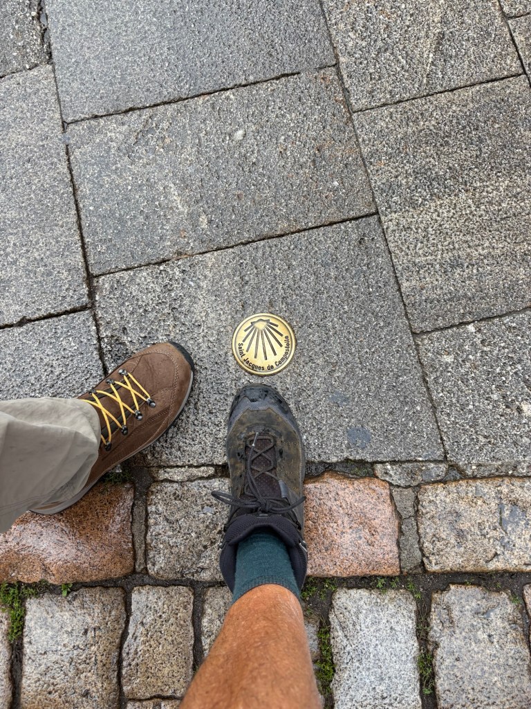 The special blessing ceremony was led by the priest who started by getting a sense of the crowd. He had people raise their hand when he called out a region of France. Those of us from other countries were also encouraged to shout out our origins, so a proper census could be taken. (It was kind of like when you go to an amusement park and they ask for your zip code, so their marketing people know where to spend their money next year.) Then, the priest told the crowd about all the prayer cards and religious trinkets that could be acquired for a small donation. (I called this the “and now a word from our sponsor” section.) This was followed by a brief blessing and the opening of the back gates which led to the Walk of St. James. Some people left the cathedral, while others, like JP and I waited in lines for some of the religious goodies.